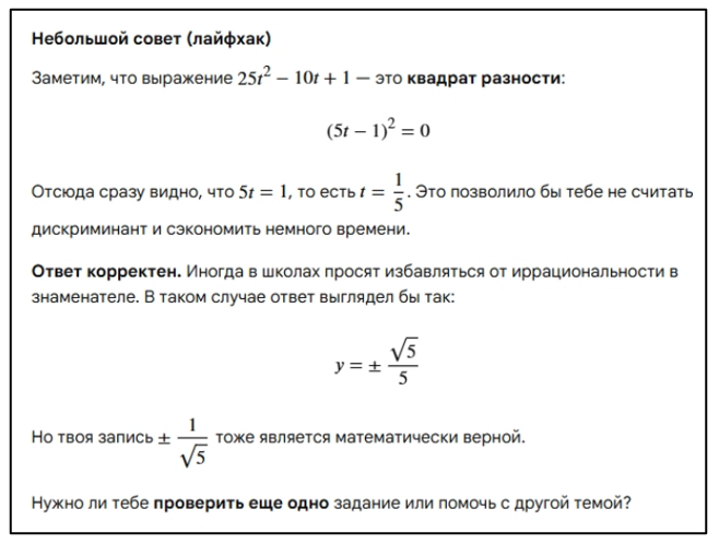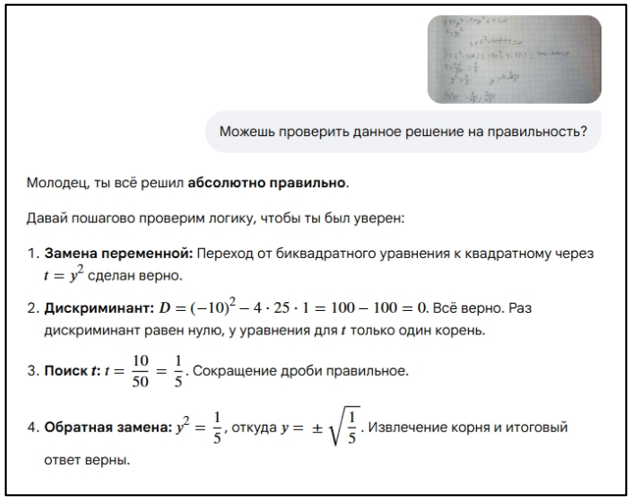 Запрос: «Можешь ли проверить данное решение на правильность?»